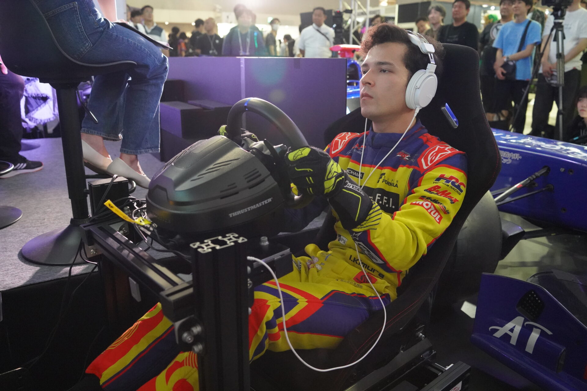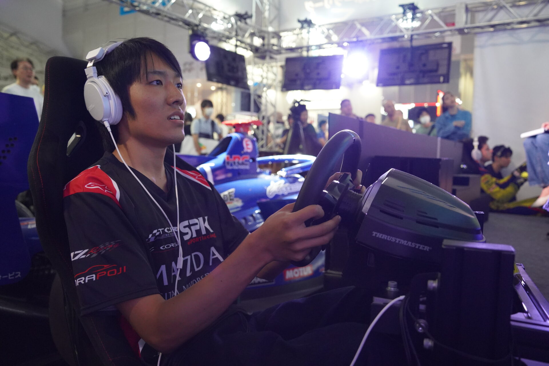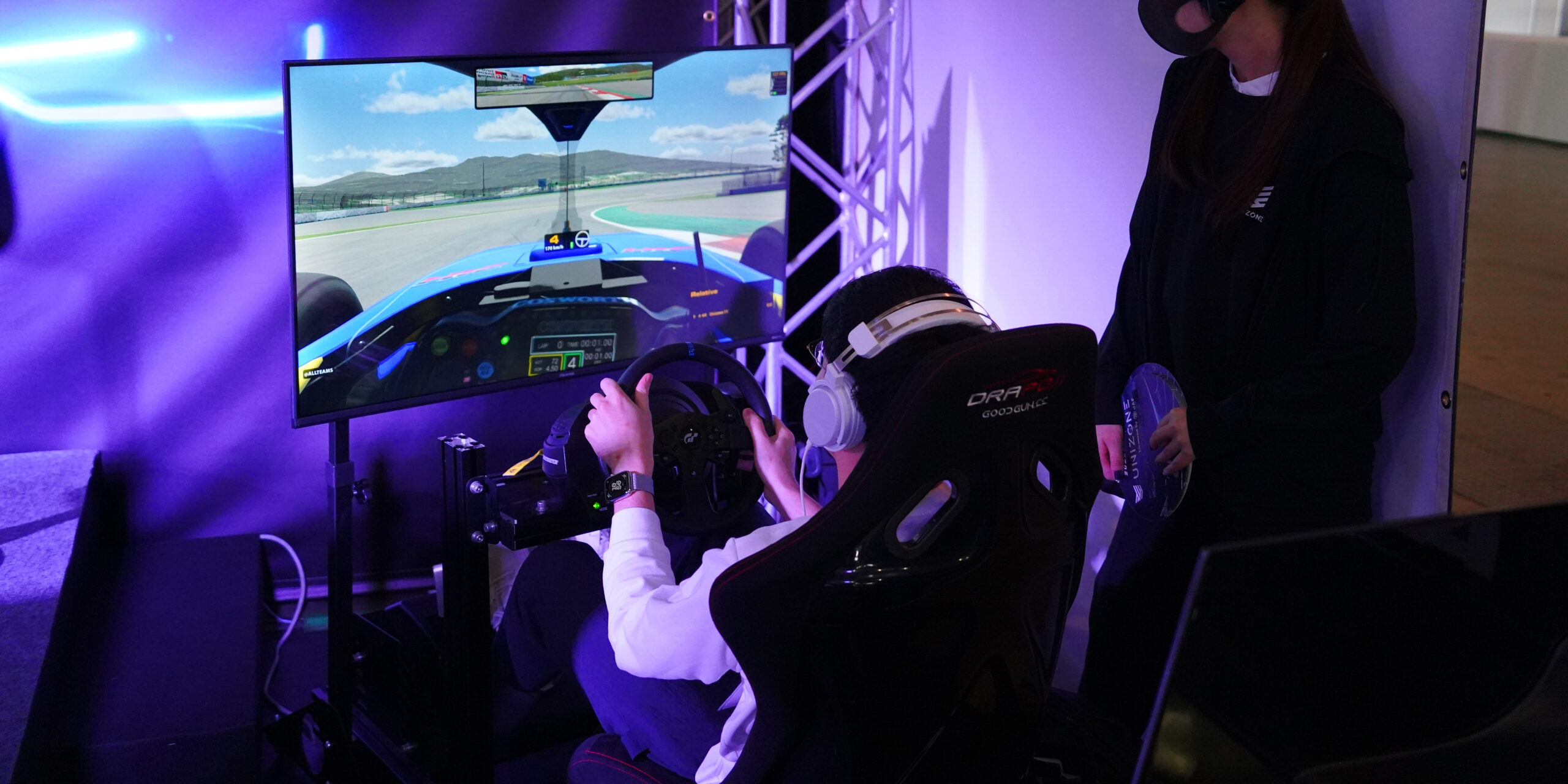 UNIZONEブースではiRacingのシミュレーターを2台用意しており、来場者の方々に体験していただけるようにしました。こちらも多く方々にお並びいただき、体験していただくことができました。