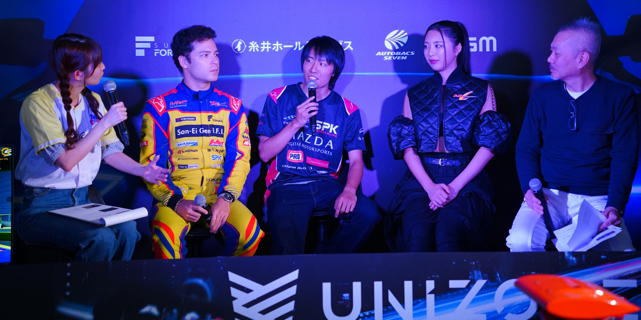 トークセッションではモータースポーツに関する話題の談笑やUNIZONEの紹介、2025年に開幕するUNIZONEリーグの紹介などを行いました。一般公開日両日では、ブースを囲むように2周ほどの来場者が集まり、UNIZONEについて知っていただくことができました。