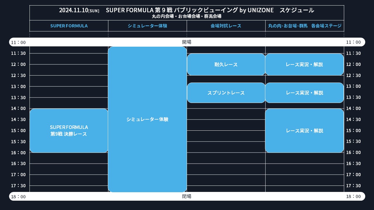 | イベント | SUPER FORMULA 第9戦 パブリックビューイング by UNIZONE |