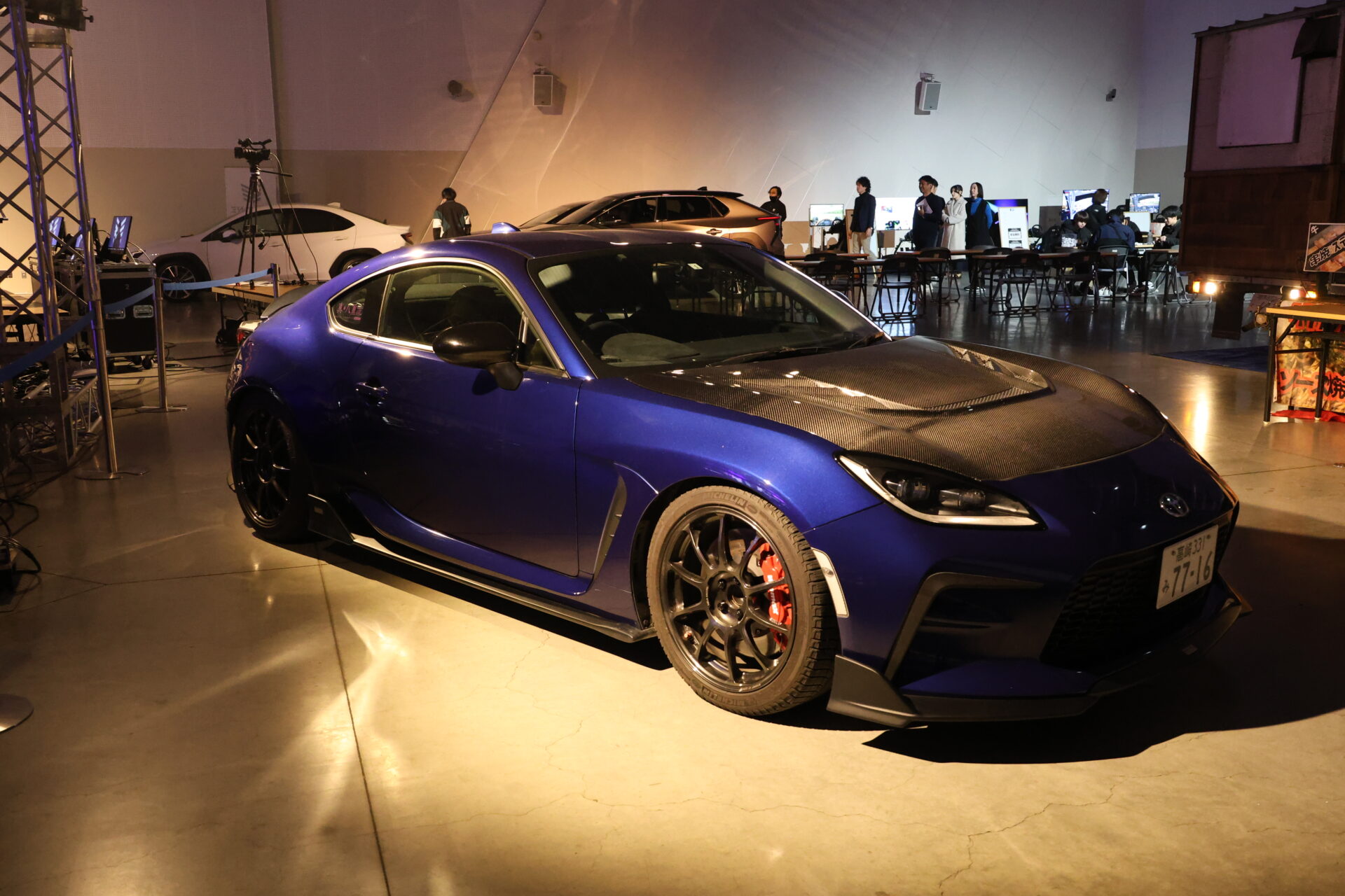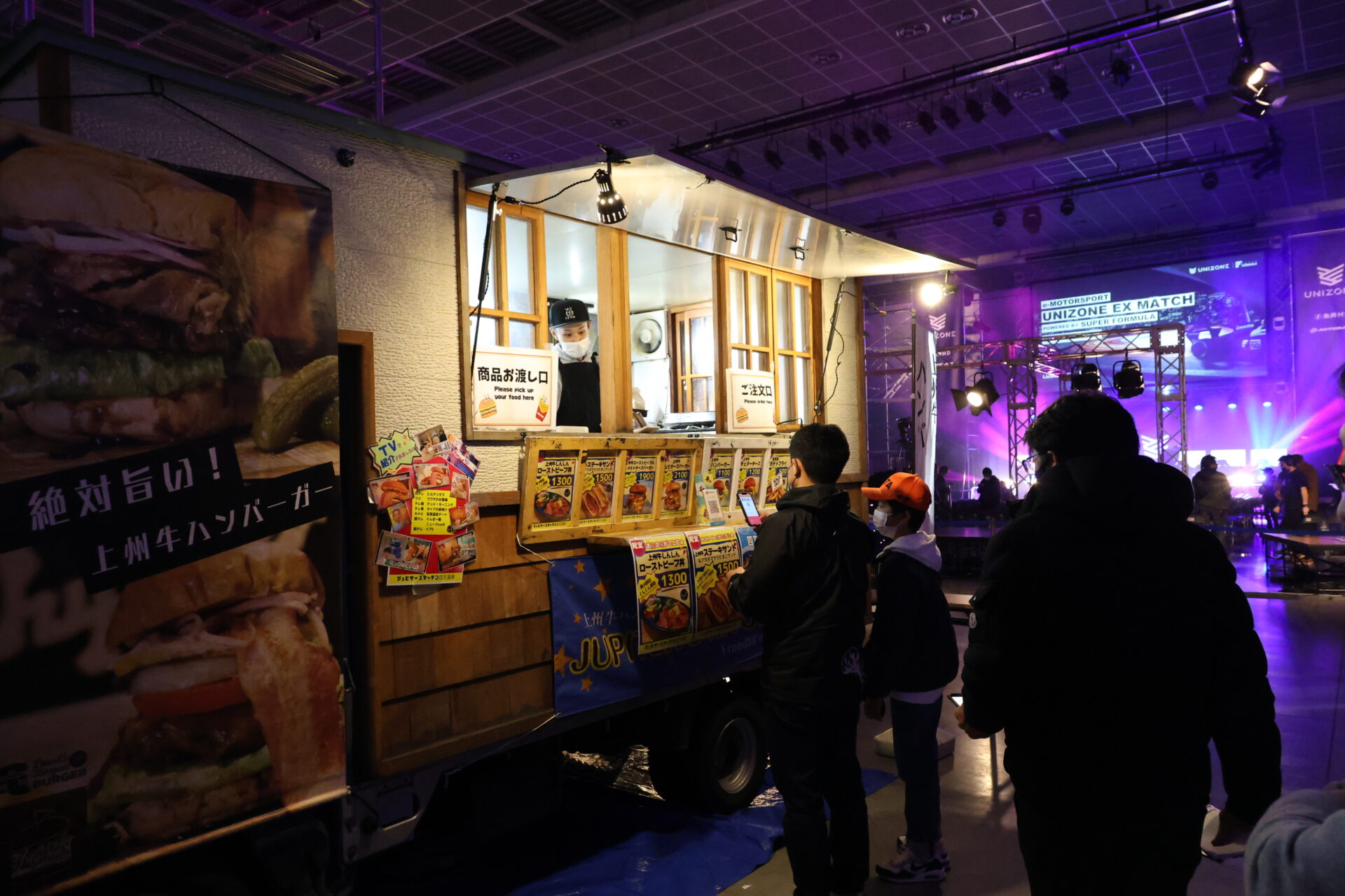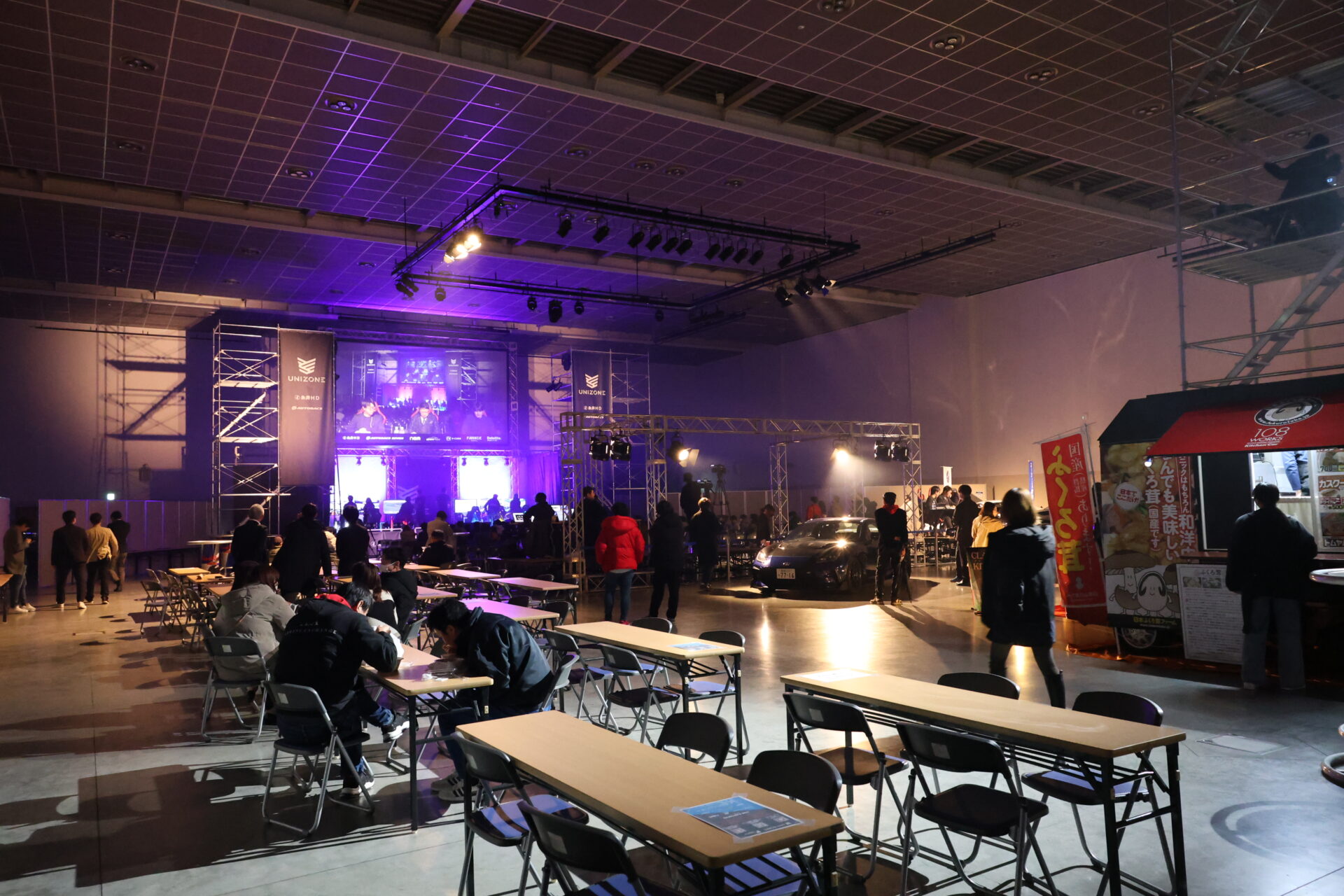 会場内にはイベントステージはもちろん、eモータースポーツを体験できるグラスルーツコーナーやキッチンカー、地元ディーラー協力によるスポーツカー展示を行いました。