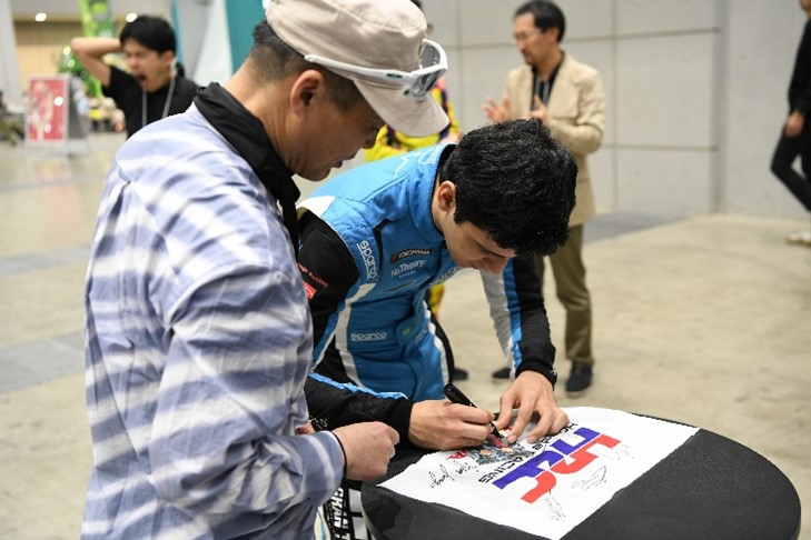 また、2日目の3月31日にはステージイベントに出場した選手らも出展ブースにお越し頂き、デモ走行や来場者との交流を行いました。