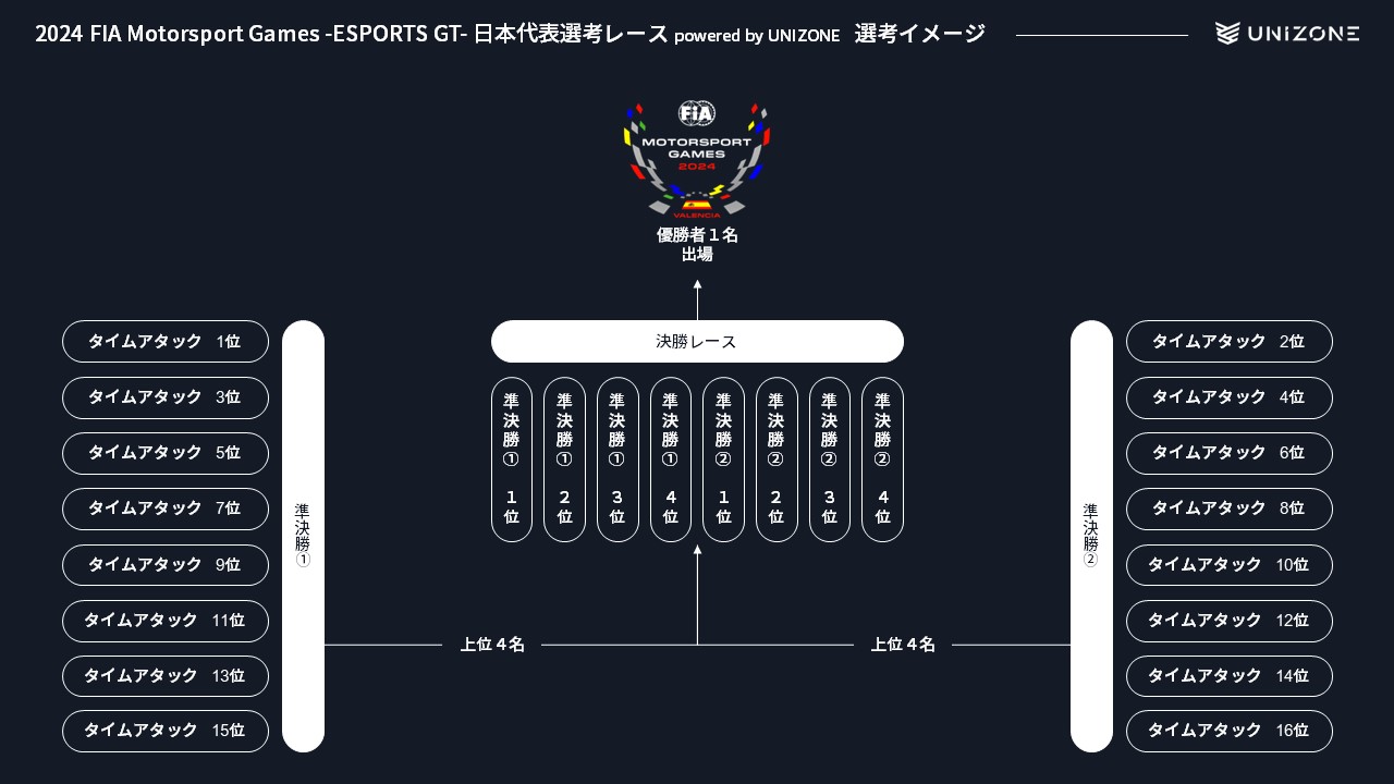 国内で唯一JAF(日本自動車連盟)の公認を受けたeモータースポーツ大会「UNIZONE」を運営する一般社団法人日本eモータースポーツ機構(以下「JeMO」)は、2024年10月23日(水)から27日(日)にスペインで開催される「FIA Motorsport Games -Esports GT-」へ日本代表として出場する選手を選出するイベント「2024 FIA Motorsport Games -ESPORTS GT- 日本代表選考レース powered by UNIZONE」を8月10日(土)に開催しました。
