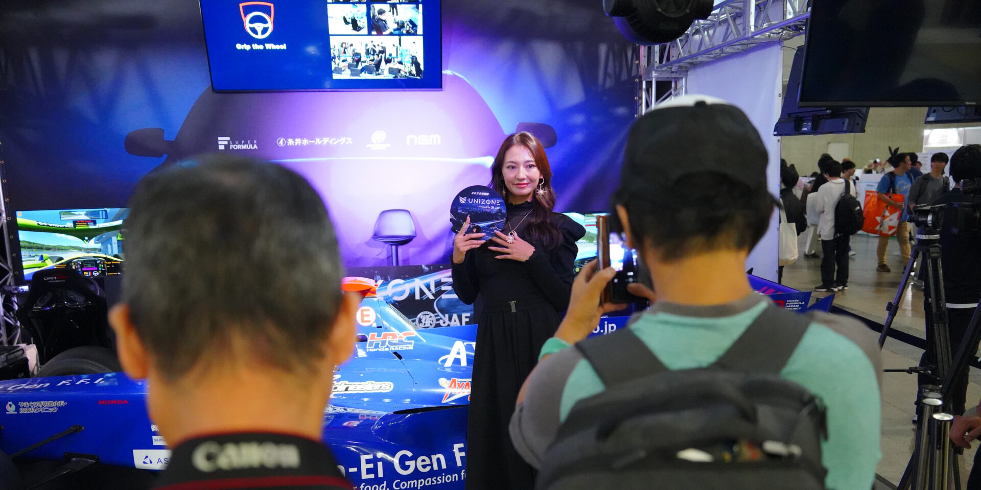 トークセッションではモータースポーツに関する話題の談笑やUNIZONEの紹介、2025年に開幕するUNIZONEリーグの紹介などを行いました。一般公開日両日では、ブースを囲むように2周ほどの来場者が集まり、UNIZONEについて知っていただくことができました。