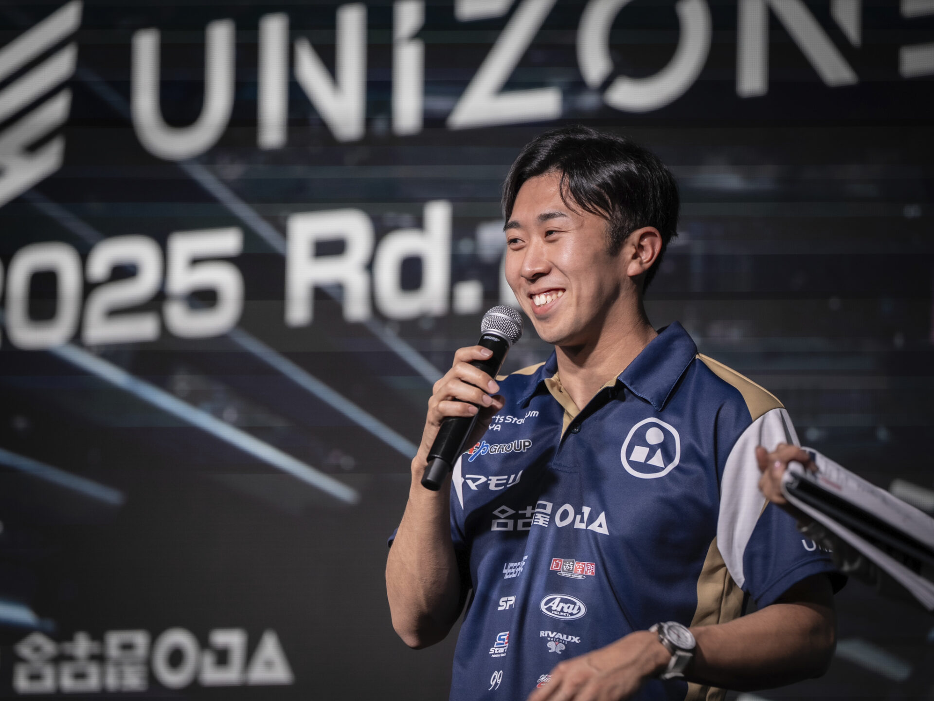 一方、混乱を冷静に見極めた武藤選手はS字区間で大滝選手をパス。スタートの出遅れを挽回し、見事に表彰台圏内まで復帰しました。 トップを快走していた小出選手は、そのまま初優勝かと思われましたが、スタート時に瀬田選手との接触が審議対象となり、10秒のタイムペナルティが下されます。これにより、2位でフィニッシュした小此木選手が繰り上がりで1位に。自身初勝利とともに、所属チームである群馬ダイヤモンドペガサスにとってもUNIZONE初の勝利をもたらす快挙となりました。